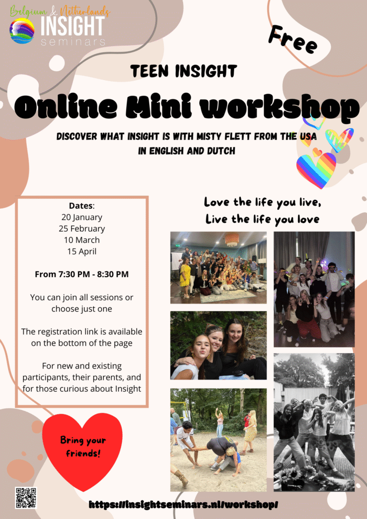Het Insight programma biedt een kans om samen met anderen te ontdekken wat écht belangrijk voor ze is, weg van alle verwachtingen van buitenaf. Dit is de plek waar tieners kunnen leren hoe ze zichzelf kunnen zijn, hoe ze bewuste keuzes maken en hoe ze veerkracht ontwikkelen om met tegenslagen om te gaan.